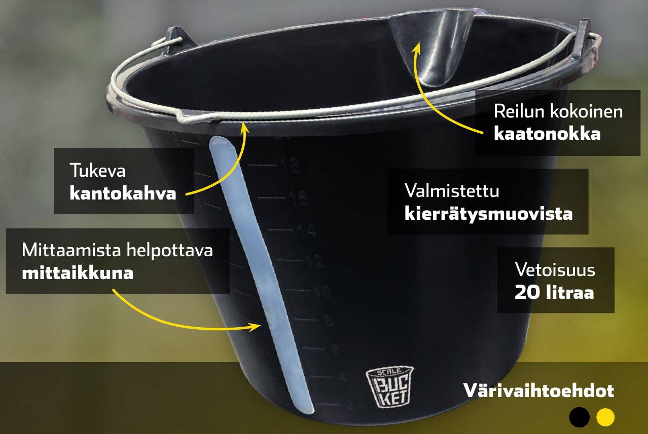 Lisää ämpärin käyttöikää, etenkin rakennustöissä,